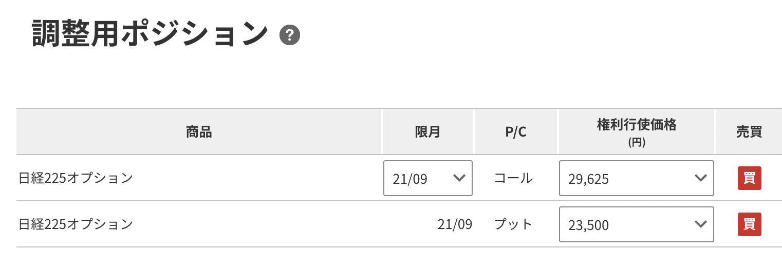 なお、ストラテジー毎の調整用ポジションの一覧は本書末尾に掲載しております。