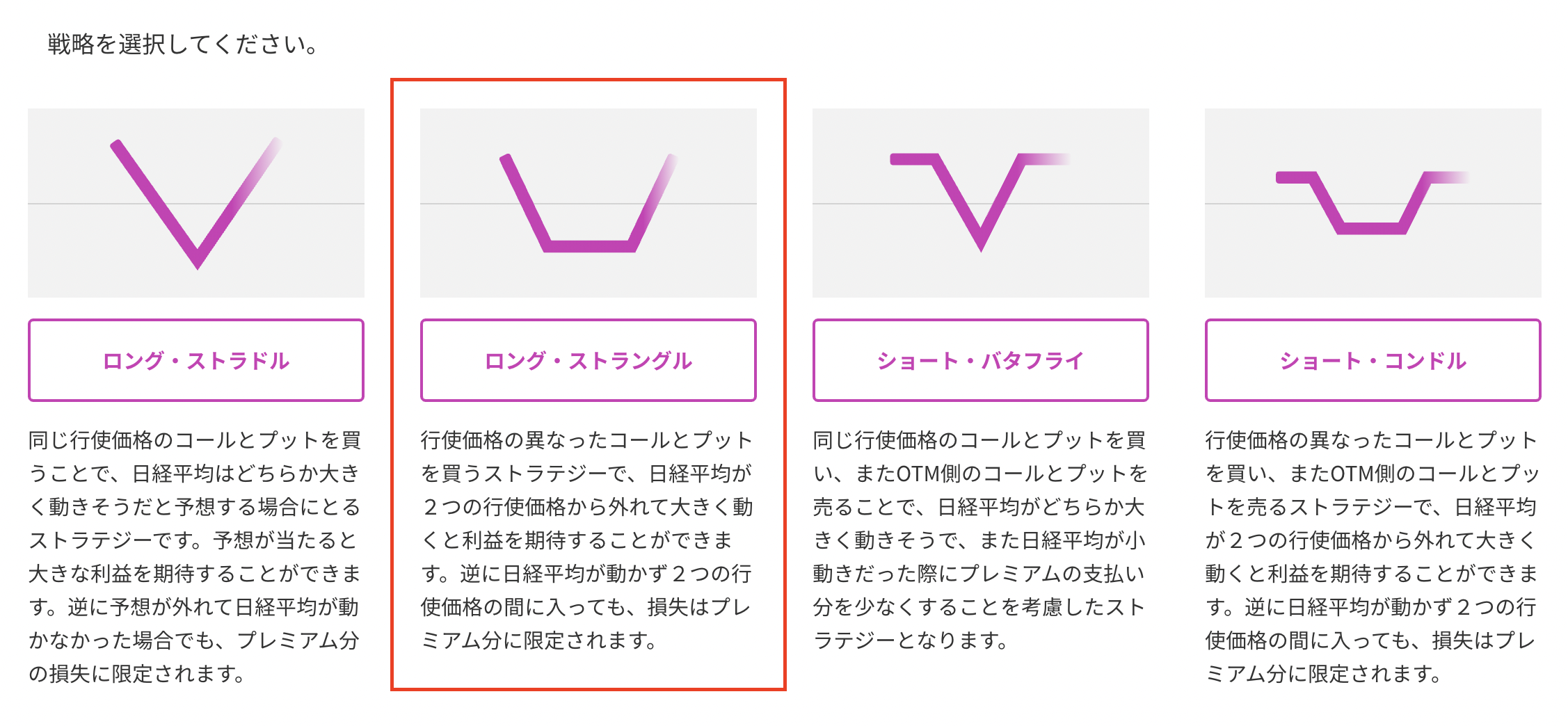 2.相場見通しに合致したストラテジーが4つ提示されますので選択します。